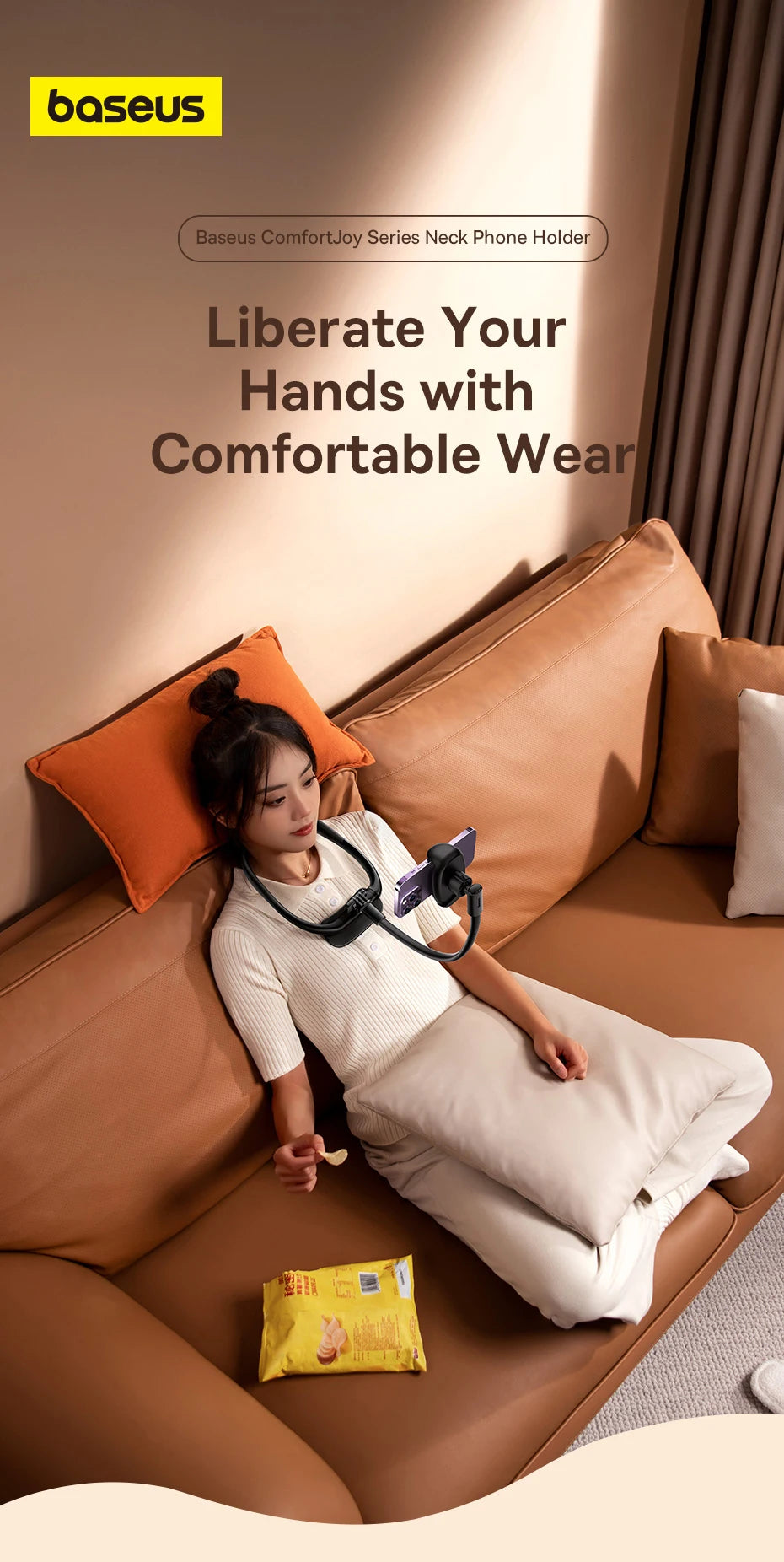 The Baseus Flexible Phone Holder offers versatile support for your smartphone with a neck-hanging design that allows hands-free use in various positions. Its flexible arm lets you adjust the phone’s angle for optimal viewing, making it ideal for watching videos, video calls, or browsing while keeping your hands free. Compatible with iPhone 17, Air, 16 Pro Max, and other models, this mount blends convenience with stability whether you’re at your desk or relaxing. Durable and lightweight, it provides a practical solution for comfortable, prolonged device use.